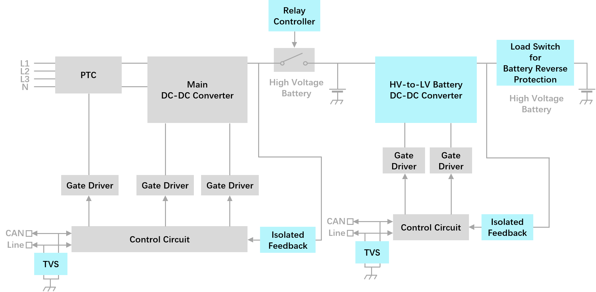 電網(wǎng)中的交流電通過交流充電樁直接給車載充電器 (OBC) 供電,OBC 把 AC 轉換成 DC,然后通過配電箱為車內(nèi)的動力電池充電。直流充電樁則包含許多 AC-DC 電源模塊。從目前充電樁市場的狀況來看,有 3 大趨勢:寬范圍的恒定功率、寬范圍的輸出電壓、更高功率的模塊。 兩個主要功率級。首先,功率因素校正 (PFC) 級,保持輸入電流和電壓之間的相位關系,最大限度地減少線路/電網(wǎng)電流的總諧波失真 (THD) 。這有助于減少任何浪費的無功功率,提高整體能效。 第二功率級是 DC-DC 轉換器,它從 PFC 級獲得 DC 輸出,并將其轉換為電池充電所需的電平。轉換器的輸出電壓和電流基于電池的整體健康狀態(tài)和充電狀態(tài)隨時間變化。 不論是功率因數(shù)校正(PFC)、原邊側 DC-DC、或二次整流,捷捷微電都具有相應的解決方案,汽車系列產(chǎn)品涵蓋二極管、MOSFET、TVS 等各類產(chǎn)品。比如:整流+LLC 構成了充電樁的基本電路,可采用 FRED(快恢復二極管)方案;CAN 通訊口的 ESD 保護。