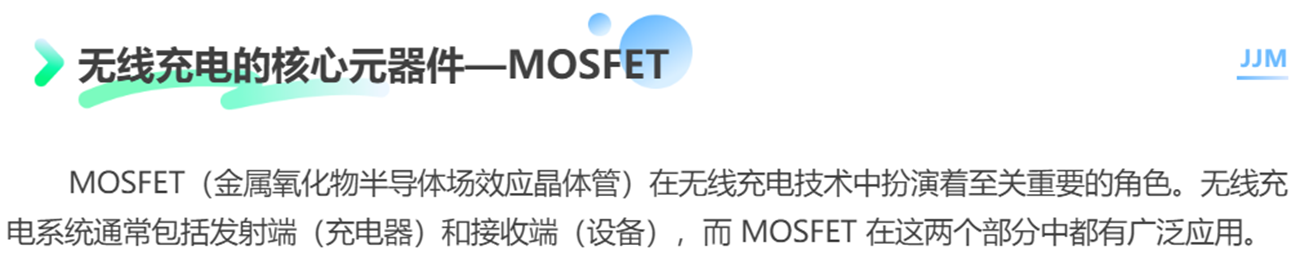 MOSFET(金屬氧化物半導(dǎo)體場效應(yīng)晶體管)在無線充電技術(shù)中扮演著至關(guān)重要的角色。無線充電系統(tǒng)通常包括發(fā)射端(充電器)和接收端(設(shè)備),而 MOSFET 在這兩個部分中都有廣泛應(yīng)用。